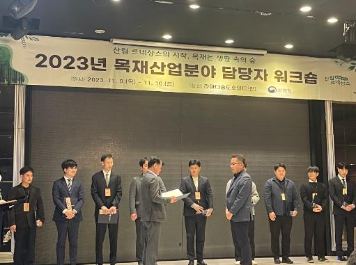 봉화군은 지난 9일 인천광역시 연수구 라마다 송도 호텔에서 열린 ‘2023년 목재산업 워크숍’에서 목재친화도시 조성사업 우수사례에 선정되어 산림청장상 표창을 받았다.