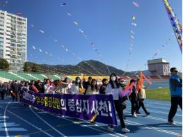 코로나19로 5년 만에 개최된 이번 체육대회는 벌용동 대표 풍물패 ‘새터’ 팀의 공연과 삼천포고등학교 태권도부의 시범공연으로 흥겹게 막을 올렸다.