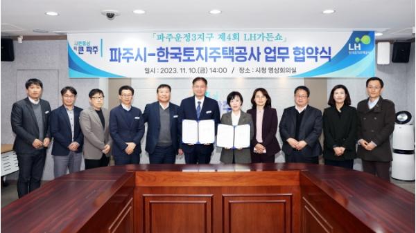 파주시와 한국토지주택공사는 지난 10일, 내년 9월 개막식이 열릴 예정인 파주운정3지구 제4회 한국토지주택공사(LH) 정원박람회(가든쇼)의 성공적인 개최를 위한 업무협약식을 가졌다.