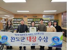 완도군이 지난 9일 열린 '제8회 책 읽는 대한민국' 시상식에서 ‘책 읽는 지자체’ 부문 대상과 보길도의 윤선도 작은 도서관이 ‘작은 도서관’ 부문에서 대상을 동시에 수상하는 영예를 안았다.