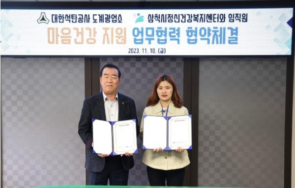 삼척시정신건강복지센터는 지난 11월 10일 대한석탄공사 도계광업소와 임직원의 정신건강 증진을 위한 상호 간 협력관계를 도모하고자 업무협약을 체결했다.