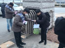 김천상무프로축구단이 수능 당일 4개 고교 앞에서 핫팩과 응원 메시지를 전달했다.