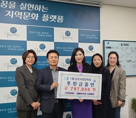 군포문화재단은 지난 10월 31일 군포사랑장학회 2023 생활문화축제 수공예마켓 수익금의 일부인 79만원을 기부했다고 밝혔다.