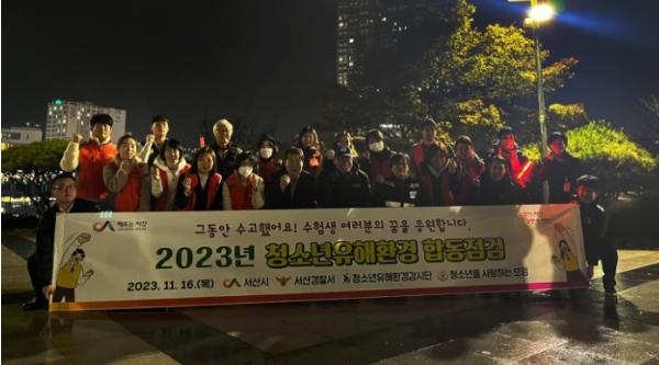 충남 서산시는 지난 16일 수능을 맞아 서산경찰서, 서산교육지원청, 청소년상담복지센터, 청소년유해환경감시단, 청소년을 사랑하는 모임 회원 등 60여 명이 합동으로 서산시 일원에서 청소년유해환경 점검 및 캠페인 활동을 펼쳤다고 밝혔다.