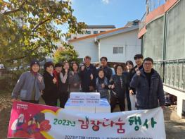 SK에코플랜트가 후원한 이 행사는 원삼면 7개 단체장과 회원 100여명이 참여해 10㎏ 350통 분량의 김치를 어려운 이웃 300가구에 직접 전달했다.