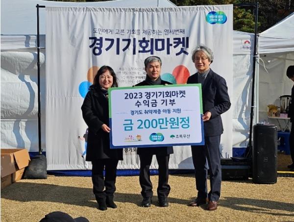 수익금 기부식에는 정구원 자치행정국장과 양정희 수원맘모여라 카페매니저, 이충로 초록우산어린이재단 경기지역본부장이 참석했으며, 기부금 200만 원은 경기도 내 취약계층 어린이 생계 지원을 위해 사용될 예정이다.