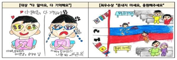 대상에는 ‘다 알아요, 다 기억해요’, 최우수상에는 ‘혼내지 마세요, 응원해 주세요’, ‘동글동글한 마음이 좋아요, 뾰족뾰족한 마음은 싫어요’, ‘내 목소리 안 들려요?’라는 제목의 그림과 포스터가 선정됐다.