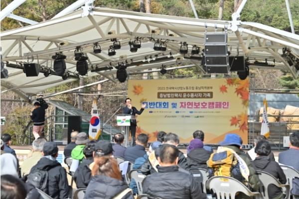 김태흠 충남도지사는 19일 예산 수덕사에서 열린 ‘2023년 충남법인택시운수종사자 노사문화정착사업 등반대회’에 참석해 대회 개최를 축하하고 종사자들을 격려했다.