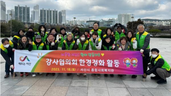 충남 서산시는 지난 18일 종합사회복지관 강사협의회 회원들이 지난 18일 예천동 하천 일대에서 환경정화 활동을 펼쳤다고 밝혔다.