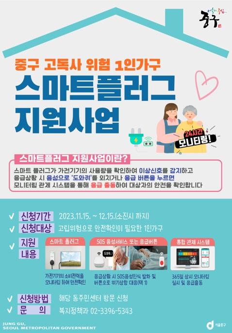 서울 중구가 사물인터넷(IOT) 기기로 안부를 확인하는‘스마트플러그 지원사업’을 추진해 고독사를 예방한다.