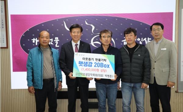 박범인 금산군수는 읍면 김장나눔 봉사를 위해 생강을 기탁한 금산약초생강작목회에 지난 17일 감사를 표했다.