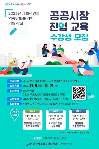 교육대상은 사회적경제기업과 사회적경제기업 전환에 관심 있는 예비창업자, 소상공인 등으로 안산시사회적경제지원센터 홈페이지에서 QR코드를 통해 신청하면 된다.