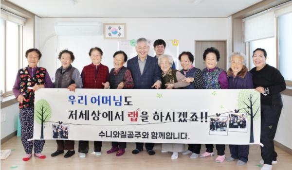 수니와칠공주 최고령 단원인 정두이(92) 할머니는“배 대표의 어머니가 저와 나이가 비슷하다는 말에 아들처럼 느껴졌다”며“어머니가 하지 못한 랩을 대신해서 열심히 부를 것”이라며 감사 인사를 전했다.