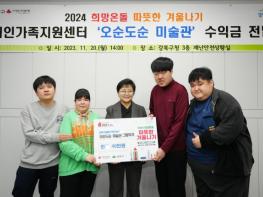 이 수익금은 강북구장애인가족지원센터가 장애인의 날을 맞아 발달장애 그림작가 전시회를 열어 마련한 것으로, 저득층 취약계층을 위한 ‘2024 희망온돌 따뜻한 겨울나기’ 모금사업에 전액 기부했다.