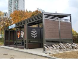이번에 설치한 쉼터에는 스마트폰 충전기, 냉?온열 벤치, 자전거 거치대, 야간 조명, CCTV 등을 설치해 주민 편의를 높였다.