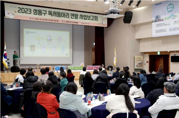 서울 성동구가 지난 16일 오후 3시 성동구청 3층 대강당에서 관내 독서동아리 회원 및 독서동아리에 관심 있는 구민을 대상으로 '2023 독서동아리 연말 사업보고회'를 개최했다.