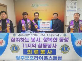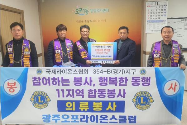 광주오포라이온스클럽은 지난 17일 오포1동 행정복지센터를 방문해 아동의류 132벌(900만원 상당)을 기탁했다.