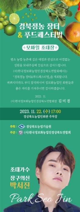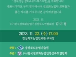 경상북도농업기술원은 (사)경상북도정보화농업인연합회(회장 김미경) 주관으로 22일 오후 5시부터 8시까지 경상북도 농업인회관에서 직거래장터를 개최한다.