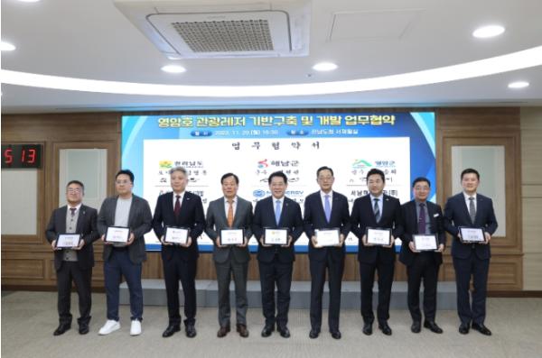 해남군은 20일 전라남도와 영암군, 한국농어촌공사, 목포대학교, 목포해양대학교, 서남해안기업도시개발(주), 서남해안레저(주), 엠씨 에너지(MC ENERGY)와 ‘영암호 관광레저 기반구축 및 개발’업무협약을 체결했다.