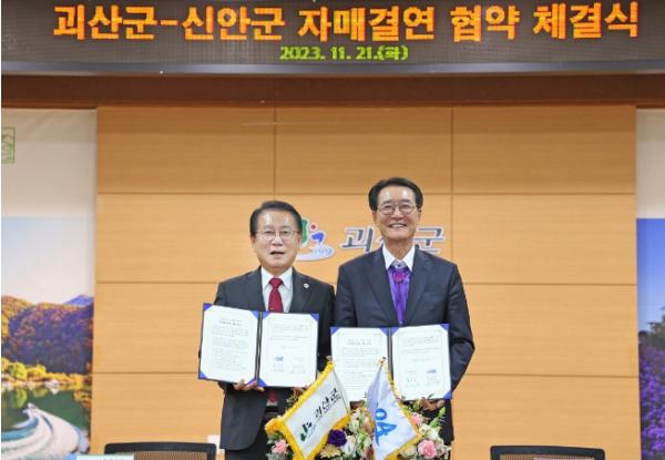 충북 괴산군은 지난 21일 군청 대회의실에서 전라남도 신안군과 상호 교류 및 우호 증진 협력을 위한 자매결연을 체결했다.