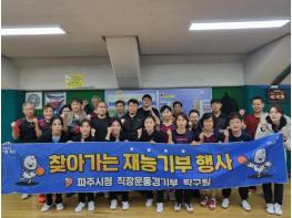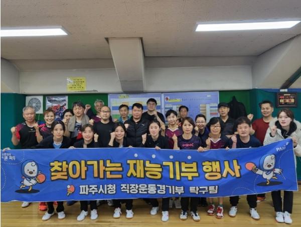 파주시 직장운동경기부 탁구팀이 21일 파주스타디움 탁구장에서 재능기부 활동을 펼쳤다.