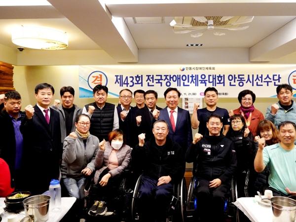 권기창 안동시장은 21일 우수한 성적을 거두고 돌아온 안동시 장애인선수단을 만나 축하하고 그동안의 노고에 격려를 전했다.