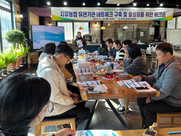 고창군농업기술센터가 지난 21일 고창군장애인복지관, 정신건강복지센터 등 사회서비스 유관기관 8개소와 치유농업 활성화를 위한 워크숍을 추진했다.