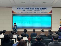 이날 교육은 ‘청렴·공정 서비스 민원 수용성을 높여라’라는 주제로 청렴연수원 박연정 강사의 강연으로 진행됐으며, CS(Customer Service)와 청렴 교육의 기회를 동시에 제공함으로써 다양한 민원인 응대 시, 공직자로서 갖춰야 할 ‘청렴’과 ‘친절’ 두 마리 토끼를 잡는 일석이조의 효과를 거뒀다.