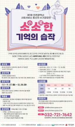 인천시사회서비스원은 1회 인천시 사회서비스 종사자 수기공모전 ‘소소(小笑)한 기억의 습작’을 연다고 23일 밝혔다.