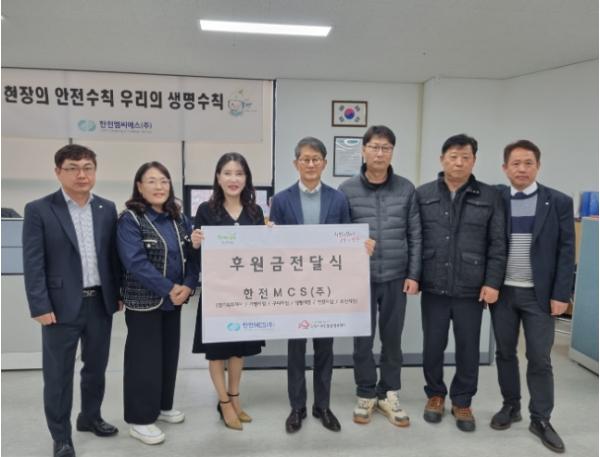 양주시무한돌봄행복센터는 지난 11월 22일 한전엠씨에스(주) 경기북부지사를 방문하여 양주시에 있는 저소득?위기가정을 지원하기 위해 후원금 1,250,000원을 전달하는 행사를 가졌다.