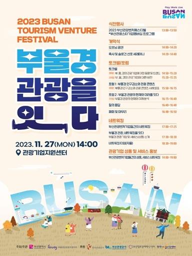 부산시는 오는 11월 27일 오후 2시 부산관광기업지원센터(영도구 소재)에서 '2023 부산관광벤처 페스티벌'을 개최한다고 밝혔다.