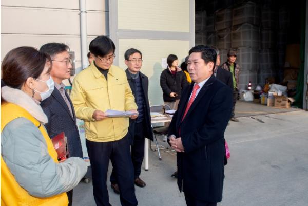 김창규 제천시장이 지난 23일 봉양 창고(봉양읍 의암로 32)에서 진행된 공공비축미곡 매입 현장에 방문, 출하 농가 및 매입 관계자들을 격려했다.