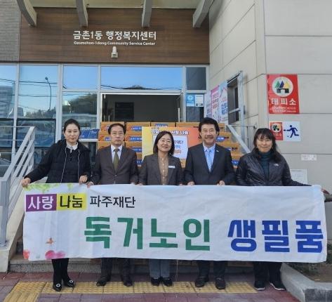 한윤자 금촌1동장은 “경제 불황 속에서도 나눔을 실천해주신 사랑나눔파주재단 고병헌 대표께 감사드린다”라며 “기탁해주신 물품은 감사한 마음을 담아 이웃들에게 전달하겠다”라고 전했다.