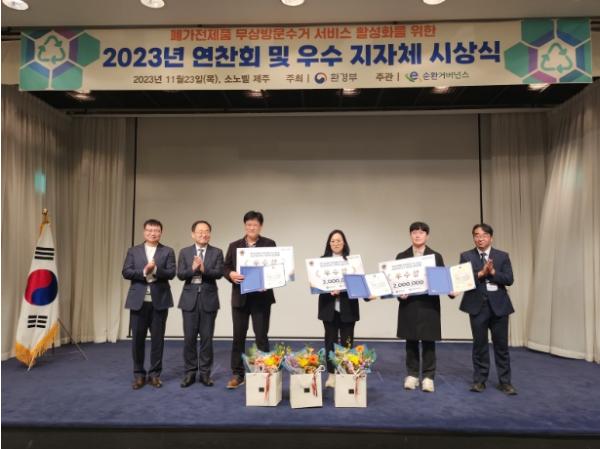 원주시는 지난 23일 환경부가 주최하고 한국전자제품자원순환공제조합이 주관하는 ‘2023년 폐가전제품 무상방문수거 우수 지자체 경진대회’에서 방문수거 운영 실적 우수기관에 선정되어‘환경부 장관상’을 수상했다.