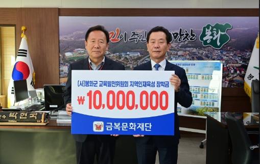 (재)금복문화재단은 지난 23일 봉화군청을 방문해 (사)봉화군교육발전위원회에 장학기금 1천만 원을 전달했다.