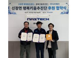 ㈜나스테크가 지난 23일 신창면 행복키움추진단과 저소득 가정을 지원하는 후원 협약을 체결했다.