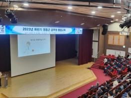 상반기에 이어 두번째로 진행된 통합교육은 공무원들이 필수로 받아야 할 법정의무교육인 반부패·청렴교육, 성매매·가정폭력 예방교육과 중대재해 예방교육 순서로 진행됐다.