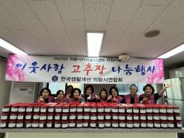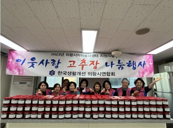 의왕시 생활개선회는 지난 23일 회원들이 직접 만든 고추장 300개를 관내 노인복지관 어르신에 전해달라며 도시농업과에 전달했다.