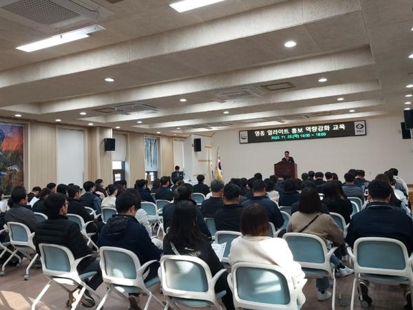 충북 영동군이 군청 전직원을 대상으로 영동 일라이트 홍보 역량강화 교육을 개최했다고 밝혔다.