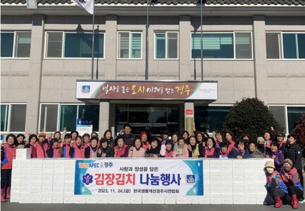 한국생활개선경주시연합회는 지난 24일 경주시농업기술센터에서 사랑과 정성을 담은 ‘김장김치 나눔행사’를 통해 이웃사랑을 실천했다.