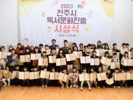 시는 25일 전주혁신도시 복합문화센터에서 우범기 전주시장과 수상자 및 가족 등 150여 명이 참석한 가운데 ‘2023 전주시 독서문화진흥 시상식’을 가졌다.