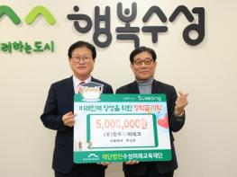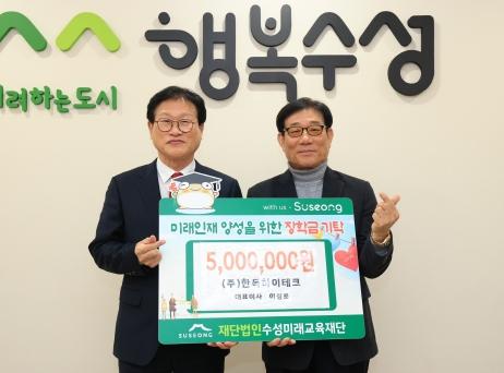 이성로 ㈜한독하이테크 회장이 지난 23일 미래인재 육성과 지역 교육 발전을 위해 장학금 5백만원을 수성미래교육재단에 기탁했다.