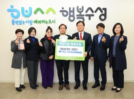 봉사단체 청림회는 지난 23일 관내 어려운 이웃들을 위해 백미 10kg 100포(300만원 상당)를 대구 수성구청에 전달했다.