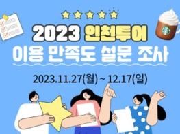 이번 조사는 11월 27일부터 12월 17일까지 총 3주간 진행되며, 지역 제한없이 인천투어 홈페이지 방문자라면 누구나 참여할 수 있다. 이벤트 참가자 중 300여 명을 추첨해 모바일 전자 상품권을 증정할 계획인데, 당첨자 발표는 12월 22일 인천투어 홈페이지 공지사항에 게시하고 당첨자에게는 개별적으로 문자를 발송할 예정이다.