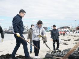 오영훈 지사는 이날 플로깅과 비치코밍, 자연테라피에 참여해 도민 및 관광객들과 함께 해양쓰레기를 줍고 힐링하며 제주바다사랑을 몸소 실천했다.