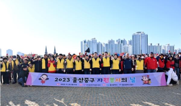 (사)울산중구자원봉사센터(이사장 박민호)가 11월 25일 오전 9시 태화강체육공원 청소년 푸른쉼터 일대에서 ‘2023 울산 중구 자원봉사의 날’행사를 운영했다.
