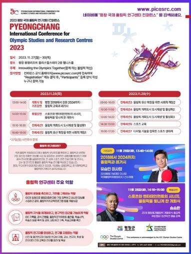 2024 강원 동계청소년올림픽대회 성공개최를 기원하고 올림픽과 스포츠 관련 연구 동향을 공유하기 위해 마련된 이번 컨퍼런스는 올림픽 연구센터 외에도 스포츠 전공 대학(원)생과 교수 등이 참석하여 학술적 논의를 함께할 예정이다.