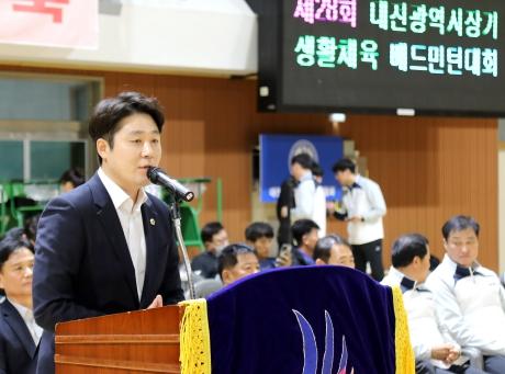 축사에서 김진오 부의장은“배드민턴은 이미 우리 일상 속의 대표적인 생활체육으로 자리매김되어 많은 사람들한테 사랑받는 스포츠가 됐다”며,“오늘 배드민턴 대회를 통해 평소 갈고닦은 실력을 발휘하고, 건강한 에너지를 충전해 가시길 바란다”고 말했다.