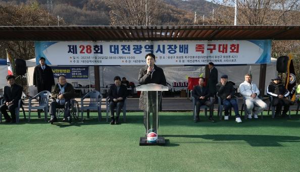 대전시의회 김진오 부의장은 26일 외삼족구전용구장에서 개최된‘제28회 대전광역시장배 족구대회’에 참석해 이종복 대전광역시족구협회장과 인사를 나누고 행사 관계자를 격려했다.