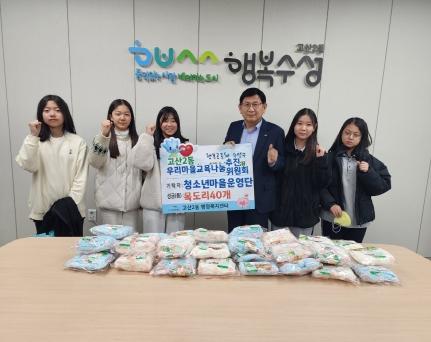 대구 수성구 고산2동 우리마을교육나눔추진위원회 청소년 마을 운영단은 지난 22일 고산2동 행정복지센터를 찾아 어려운 이웃을 위해 직접 짠 목도리 40여 개를 기부했다.